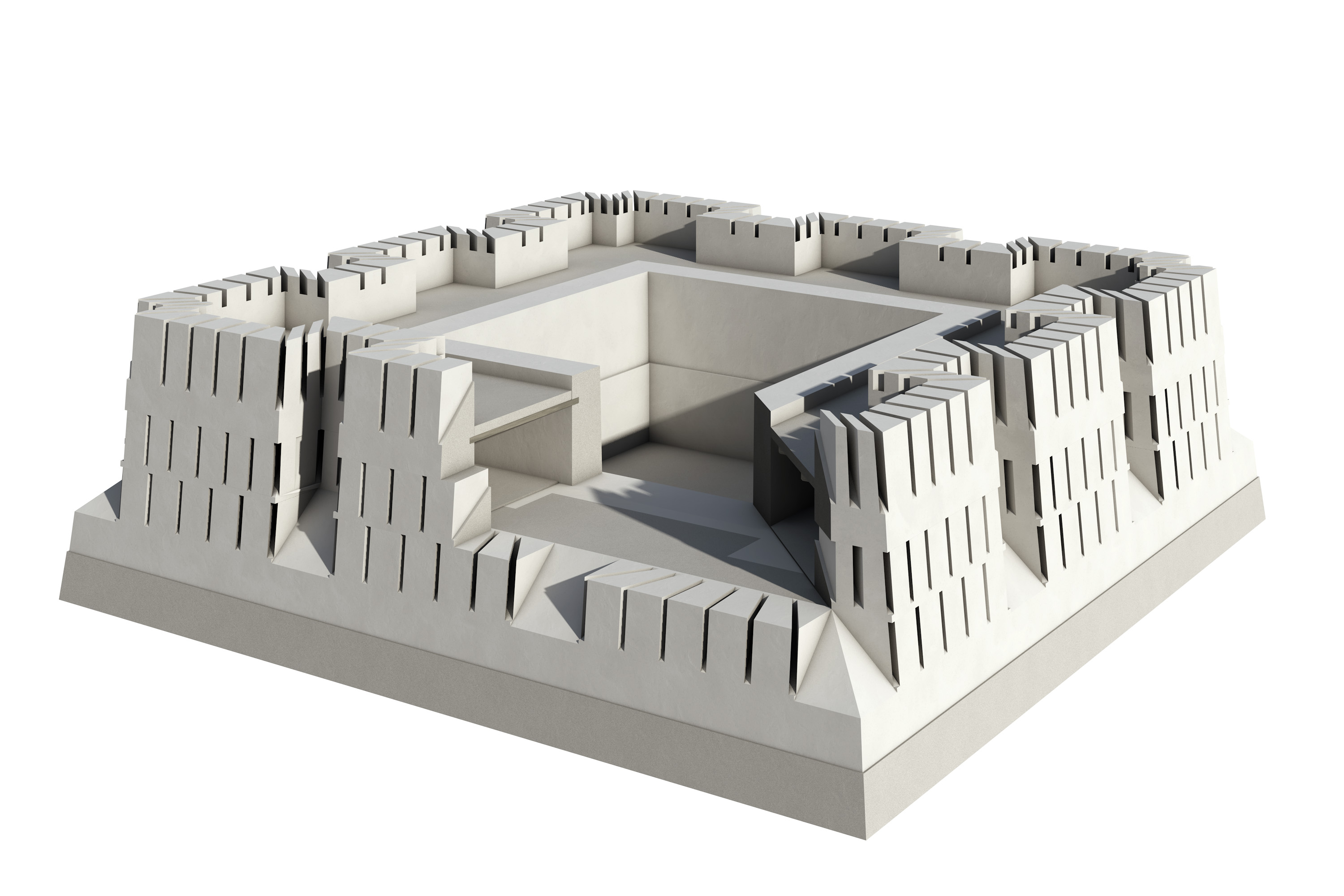 Работы по определению структуры стен показали на её общую ширину определявшуюся в 12-14 м., сохранившуюся высоту около 2 м. В целях экономии труда, времени и средств, в большинстве случаев, структура сооружения выполнялась из двух параллельных линий стен, каждая шириной 3-4 м. и расстоянием между ними 6-8м, заполнявшаяся затем обломками кирпичей и галькой с песком.