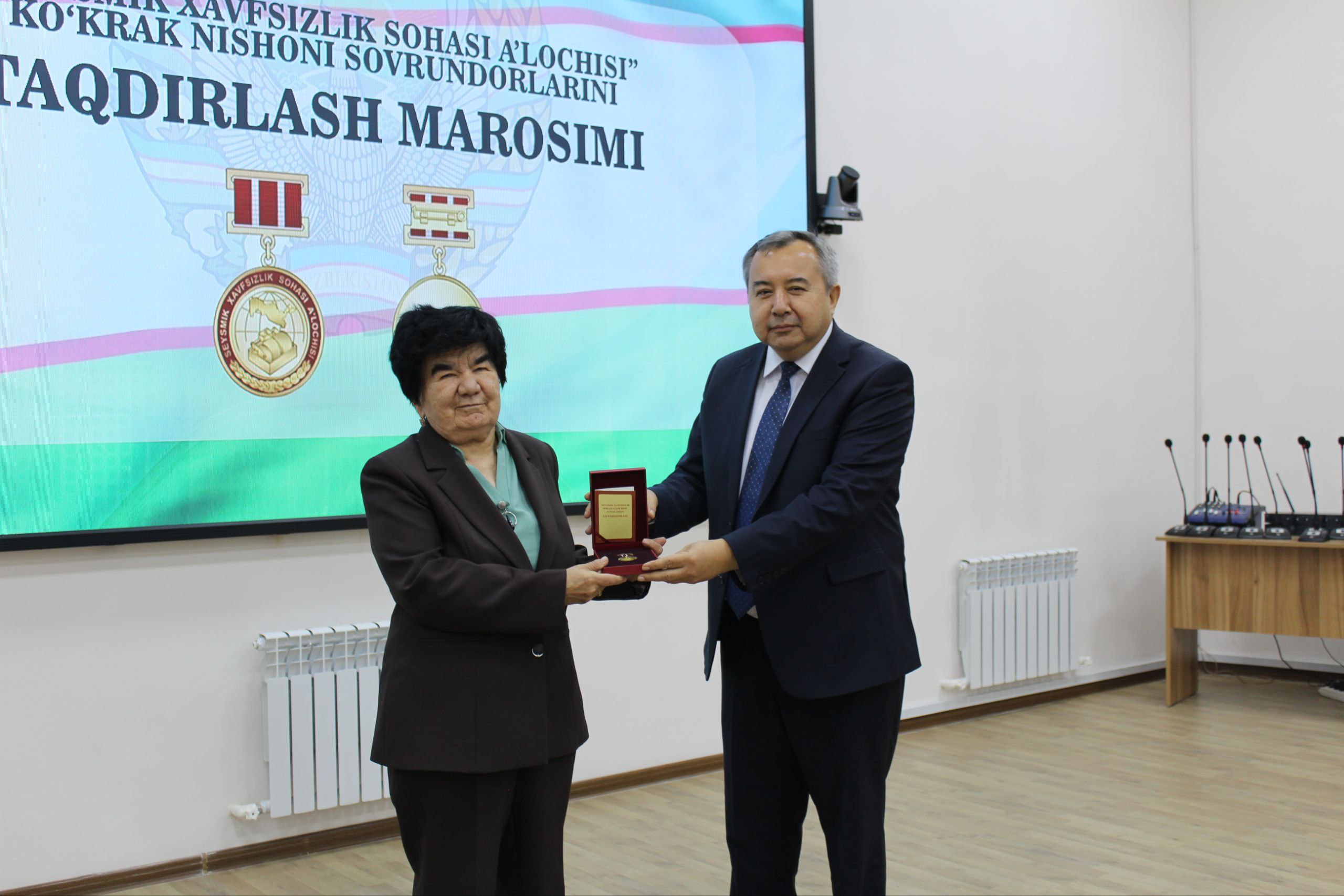Как известно, в соответствии с Указом Президента Республики Узбекистан № ПФ-144 «О мерах по дальнейшему совершенствованию системы обеспечения сейсмической безопасности Республики Узбекистан» постановлением Кабинета Министров учрежден нагрудный знак “Seysmik xavfsizlik sohasi a’lochisi”.
