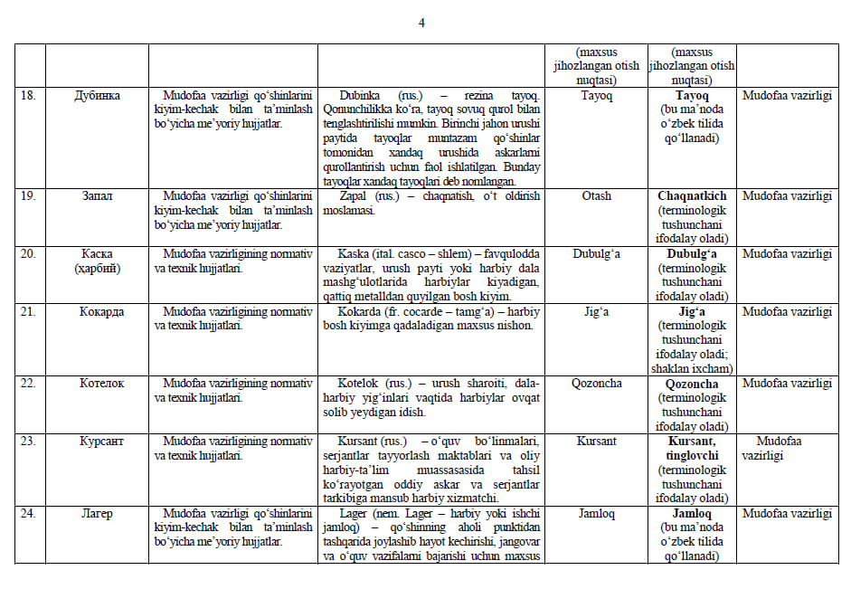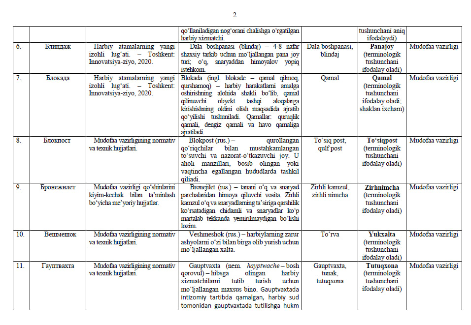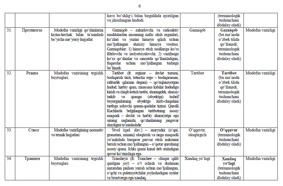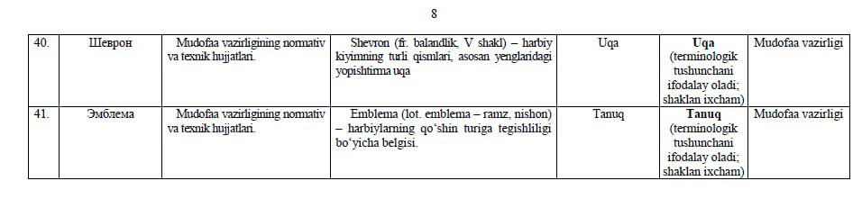 Ishchi organ galdagi taqdim etilayotgan atamalarning milliy muqobillari boʻyicha boshqa fikr va mulohazalarni ham mamnuniyat bilan qabul qiladi va koʻrib chiqadi.